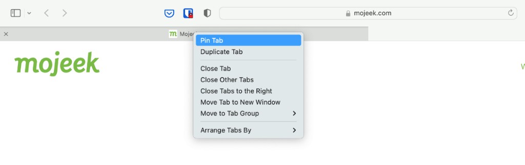 To Pin Mojeek as a Tab